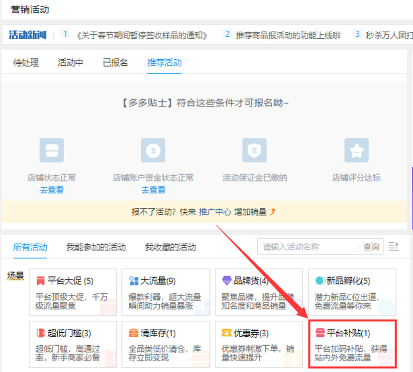 拼多多有意降低商家参与百亿补贴门槛,只要店铺状态、资金状态正常并缴纳保证金,商家即可申请参与百亿补贴活动。补贴款可以选择以推广红包或者货款汇入的形式发放,百亿补贴的活动价不会计入商品历史最低价。